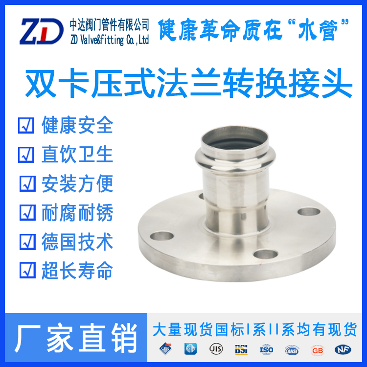衛(wèi)生及強(qiáng)大的抗腐蝕性,雙卡壓管件及雙卡壓薄壁不銹鋼水管是一種公認(rèn)的健康環(huán)保材料,產(chǎn)品使用壽命長(zhǎng)達(dá)50年以上,在使用壽命內(nèi)均能夠滿足起健康和穩(wěn)定性。SUS304不銹鋼管及管件是日本、歐洲以及其它發(fā)達(dá)國家的標(biāo)準(zhǔn)。